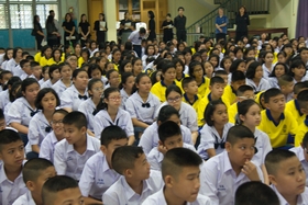 Newsวันนี้ (16 พฤษภาคม 2560) เวลา 8.00 น. ณ ห้องประชุมชั้น 3 อาคารสมเด็จพระเทพฯ เป็นการเรียกประชุมนักเรียนชั้น ม.1 ทั้งหมดเพื่อร่วมเป็นเกียรติให้กับ ด.ญ.วรรณรัตน์ โฉมงาม นักเรียนชั้น ม.1/6 ซึ่งได้รับทุนการศึกษาจากผู้อำนวยการเสรี เหลืองรุ่งรัส เป็นเงิน 10,000 บาท เนื่องจากวรรณรัตน์ ซึ่งเรียนจบชั้น ป.6 จากโรงเรียนวัดบางโรง มีพฤติกรรมเรียนดี เป็นผู้นำ กิจกรรมเด่น มีผลงานระดับประเทศ ได้รับรางวัลนักเรียนรางวัลพระราชทาน ปีการศึกษา 2559 ซึ่งผู้อำนวยการเสรี เหลืองรุ่งรัสเป็นผู้สนับสนุน และได้ติดตามดูแลมอบทุนการศึกษาให้อย่างต่อเนื่อง