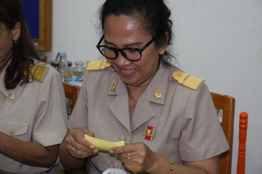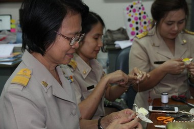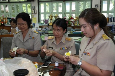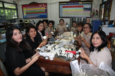 ดังนั้นเพื่อให้สามารถส่งมอบดอกไม้จันทน์ที่ผลิตได้ทันตามกำหนด ชาวบ้านเบญจมฯจึงร่วมใจกันมาช่วยคนละไม้คนละมือ ที่ห้องสำนักงานฝ่ายปกครอง และในขณะนี้ได้ส่งมอบดอกไม้จันทน์ที่ผลิตเสร็จแล้วจำนวน 500 ดอก ล็อตแรก แก่ สพม.6 ไปเรียบร้อยแล้ว