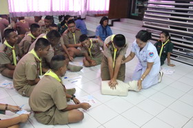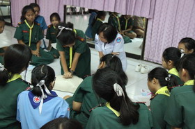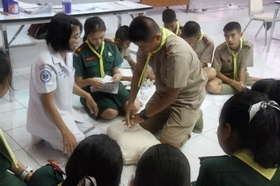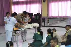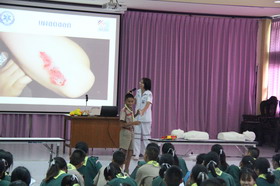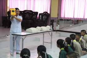 งานพยาบาลในวันที่ 5 และ 7 กรกฎาคม พ.ศ.2560 เวลา 12.30 - 15.30 น. ณ ห้องประชุมชั้น 2 อาคารสมเด็จพระเทพรัตนราชสุดาฯ โรงเรียนเบญจมราชรังสฤษฎิ์ร่วมกับโรงพยาบาลพุทธโสธร กลุ่มงานเวชศาสตร์ฉุกเฉิน งานอุบัติเหตุและฉุกเฉิน กลุ่มการพยาบาลจัดอบรมโครงการ "อาสาฉุกเฉินชุมชน(อฉช.)" โดยให้ความรู้ขั้นตอนการแจ้งเหตุทางสายด่วน 1669 การปฐมพยาบาลเบื้องต้น การช่วยชีวิตขั้นพื้นฐาน และการใช้เครื่องฟื้นคืนคลื่นหัวใจด้วยไฟฟ้าแบบอัตโนมัติ แก่นักเรียนระดับชั้นมัธยมศึกษาปีที่ 3