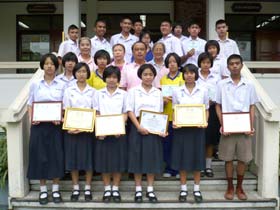 ระดับ ม.ปลาย รางวัลชมเชย ได้แก่ นางสาวภัทราพร ทรายคำ และนางสาวเพียงพัดชา เหล็กเพชร ม.4/3