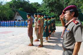 วันนี้ คณะลูกเสือ เนตรนารี ยุวกาชาด ได้เดินทางไปเข้าค่ายที่ ค่ายลูกเสือ กทม. ซึ่งตั้งอยู่ที่ อ.แปลงยาว เข้าทางเดียวกันกับทางเข้านิคมอุตสาหกรรมเกตเวย์ คณะของเราเดินทางออกจากโรงเรียนเมื่อเวลาประมาณ 8.30 น. มุ่งหน้าสู่วัดสุวรรณคีรี ซึ่งตั้งอยู่ที่เชิงเขาน้ำหยดติดถนนสายเขาหินซ้อนเกตเวย์ เพื่อเริ่มเดินทางไกลเข้าสู่ค่ายพักแรมกันที่นี่ (4-6 ตุลาคม)
