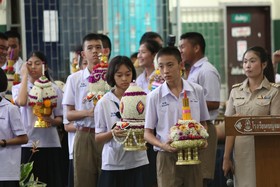 Newsในวันพฤหัสบดีที่ 13 มิถุนายน พ.ศ.2562 ดร.วีระชัย ตนานนท์ชัย ผู้อำนวยการ เป็นประธานในพิธีไหว้ครู โดยเชิญครูเก่า คณะกรรมการสมาคมศิษย์เก่าฯ กรรมการสมาคมผู้ปกครองและครูฯ มาร่วมพิธี และนักเรียนแต่ละห้องเรียนประดิษฐ์ตบแต่งพานดอกไม้ธูปเทียนอย่างสวยงามเพื่อนำมาไหว้ครู เมื่อเสร็จสิ้นพิธีมีการมอบทุนการศึกษาแก่นักเรียนจำนวนมาก โดยใช้สถานที่บริเวณสนามโรงพลศึกษาและใต้อาคารสมเด็จพระเทพฯ เป็นที่จัดงานพิธี กิจกรรมดำเนินไปด้วยความเรียบร้อยราบรื่น