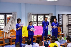 ภาษาต่างประเทศคณะครูกลุ่มสาระการเรียนรู้ภาษาต่างประเทศ นักเรียนห้องเรียนพิเศษภาษาอังกฤษ ระดับชั้นมัธยมศึกษาปีที่ 4/3 และ5/3 และนักเรียนห้องปกติที่มีความสนใจในภาษาอังกฤษ ร่วมจัดค่ายภาษาอังกฤษ ให้โรงเรียนวัดสาวชะโงก (นันทประชาสรรค์) และโรงเรียนประถมศึกษา สังกัดสำนักงานเขตพื้นที่การศึกษาประถมฉะเชิงเทราเขต 1 และเขต 2 รวม 9 โรงเรียน ภายใต้โครงการ “English Day Camp 1/2019”ให้กับนักเรียนชั้นประถมศึกษาปีที่ 5 และ 6 จำนวน 140 คน โดยมีวัตถุประสงค์เพื่อให้นักเรียนมีเจตคติที่ดีต่อการเรียนวิชาภาษาอังกฤษ กล้าแสดงออกและส่งผลให้มีผลสัมฤทธิ์ทางการเรียนวิชาภาษาอังกฤษสูงขึ้น ในวันศุกร์ที่ 5 กรกฎาคม 2562 ณ โรงเรียนวัดสาวชะโงก (นันทประชาสรรค์)