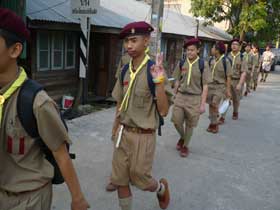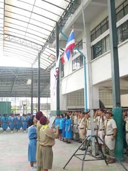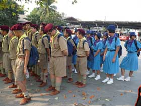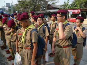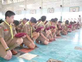 งานนี้จะขาดไม่ได้กับคณะลูกเสือกองร้อยพิเศษ และคณะลูกเสือเนตรนารีวิสามัญ เป็นกำลังหลักในการอำนวยความสะดวกช่วยเหลือทั้งผู้บังคับบัญชา และน้อง ม.1 ตลอดงาน