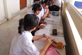 หลายคนสัญญาณเรียกเข้าห้องสอบผ่านไปแล้ว 10 นาทียังเดิน ยังนั่ง แบบทำทองไม่รู้ร้อน เห็นแล้วได้แต่ปลงอนิจจังว่านี่หนอคุณภาพของนักเรียนไทย