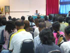 การประชุมครั้งนี้ รองฯสมนึก ชูเลิศ รองฯสุทนต์ พรหมนิยม ครูเสน่ห์ ศุภอักษร และคุณอำนวย สุนทรโชติ ได้มาต้อนรับและแถลงเรื่องราวต่างๆที่เกี่ยวกับโครงการให้ผู้ปกครองทราบ