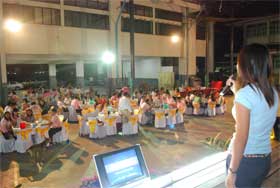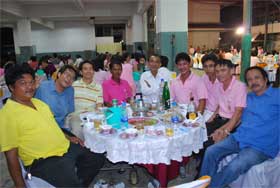 ทั้งนี้ก่อนที่ถึงเวลาร่วมรับประทานอาหารนั้น ในเวลาประมาณ 14.00 น. มีการประชุมครูทั้งหมดเป็นนัดสุดท้ายก่อนปิดภาคเรียน มีเรื่องราวต่างๆมากมายมาแจ้งให้ที่ประชุมทราบ โดยเฉพาะที่เกี่ยวกับเรื่องนโยบายเรียนฟรี 15 ปีอย่างมีคุณภาพ ที่ต้องทำความเข้าใจกันมากสักหน่อย การประชุมยืดเยื้อไปถึงถึงเวลา 17.20 น. จึงเลิกประชุม และต่างลงไปร่วมรับประทานอาหารกันที่จัดเตรียมไว้ในสนามตระกร้อ