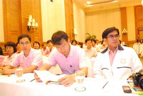จากนั้นนายบุญส่ง ชิตตระกูล ประธานคณะกรรมการสถานศึกษา และฝ่ายบริหารทุกฝ่ายได้พบและนำเสนอเรื่องที่เกี่ยวข้องให้ครูทุกท่านรับทราบ เพื่อดำเนินงานในปีการศึกษา 2552 จนถึงเวลา 17.00 น.