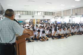 วันนี้ (7 พ.ค.) เป็นวันที่โรงเรียนได้นัดหมายให้นักเรียนระดับชั้น ม.5 และ ม.6 ปีการศึกษา 2552 เดินทางมาโรงเรียนเพื่อรับการปฐมนิเทศก่อนเปิดภาคเรียนใหม่ปีนี้ ที่ห้องประชุมชั้น 3 อาคารอเนกประสงค์ สำหรับการปฐมนิเทศในวันนี้ผู้อำนวยการโรงเรียนได้มอบหมายให้รองฯสุทนต์ พรหมนิยม รองผู้อำนวยการฝ่ายบริหารงบประมาณ เป็นประธานเปิดการปฐมนิเทศ