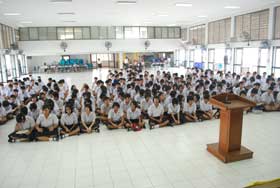 ในช่วงเวลาเช้า 9.00 น. และบ่าย 13.00 น. นักเรียนชั้น ม.5 และ ม.6 ต่างเดินทางมาร่วมกิจกรรมปฐมนิเทศกันมากพอสมควร แต่น้อยกว่าที่คาด อาจจะเป็นเพราะมีนักเรียนบางส่วนเดินทางไปรับการอบรมกับคณะกรรมการสภานักเรียนที่สัตหีบ