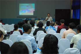 เนื่องจากสื่อการสอนมีอยู่เป็นจำนวนมากในอินเตอร์เน็ต ซึ่งครูบางท่านยังไม่รู้ว่าจะจัดหามาใช้ได้อย่างไร และเมื่อได้มาแล้วจะประยุกต์ใช้ได้อย่างไรอีก วันนี้จึงมีวิทยากรที่เชี่ยวชาญเรื่องการใช้ ICT เป็นสื่อการสอนมาสาธิตและให้คุณครูได้ลงมือปฏิบัติด้วย โดยใช้ห้องอินเตอร์เน็ต และห้อง TOT เป็นห้องปฏิบัติการ