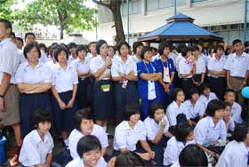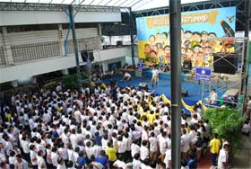 วันนี้ (19 มิย.) เป็นวันที่โรงเรียนจัดงานฉลองวันสถาปนาโรงเรียนและทำบุญทอดผ้าป่าการศึกษาประจำปี 2552 ซึ่งจัดกันมานานนับสิบปี ปีนี้ได้รับความร่วมมือจากทุกฝ่ายจัดงานขึ้นมา ถือว่าวันนี้เป็นกิจกรรมนอกหลักสูตร ไม่มีการเรียนการสอน เด็กออกมาจัดกิจกรรมภาคสนาม ร่วมสนุกกันคึกครื้นตั้งแต่เช้า ในช่วงเวลาประมาณ 10.00 น. มีพิธีทางศาสนาที่ห้องประชุมชั้น 3 อาคารอเนกประสงค์ และในขณะเดียวกันที่เวทีในสวนหูกวาง ก็มีการละเล่นต่างๆ มีการประกวดดาว เดือน เบญจมฯ ตกบ่ายที่เวทีด้านข้างอาคารอเนกประสงค์มีการแสดงคณะสีและการแสดงดนตรีของกลุ่มนักเรียนหลายวง งานเลิกประเมาณ 17.00 น.