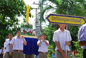 โรงเรียนเบญจมราชรังสฤษฎิ์แห่เทียนพรรษาไปยังวัดสายชล ณ รังษี