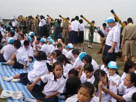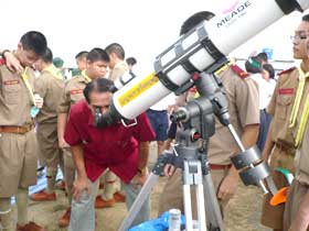 กลุ่มสาระการเรียนรู้วิชาวิทยาศาสตร์ นำโดยครูชูชาต แพน้อย หัวหน้ากลุ่มสาระฯ ได้จัดกิจกรรมดูสุริยุปราคา ในวันที่ 22 ก.ค. นี้ โดยเตรียมงานกันมาตั้งแต่เย็นวันที่ 21 ก.ค. มีนักเรียนในทีมงานของกลุ่มสาระวิทย์ดำเนินการ แต่เมื่อเข้าสู่วันที่ 22 ก.ค. ปรากฎว่าท้องฟ้าวันนี้ไม่อำนวยเนื่องจากมีเมฆฝนหนาแน่นเต็มท้องฟ้า ทำให้บรรยากาศการจัดกิจกรรมวันนี้กร่อยลงไป ทั้งครู นักเรียน ตลอดจนน้องๆจากโรงเรียนอนุบาลที่อุตส่าห์เดินเท้ามาที่โรงเรียนเบญจมฯต่างพากันผิดหวังไปตามๆกัน