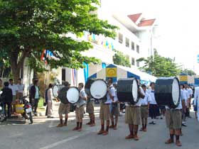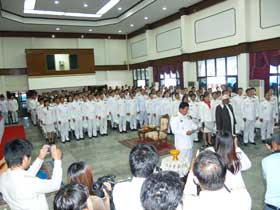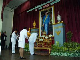ผู้อำนวยการและคณะร่วมพิธีถวายพระพรที่ศาลาประชาคม