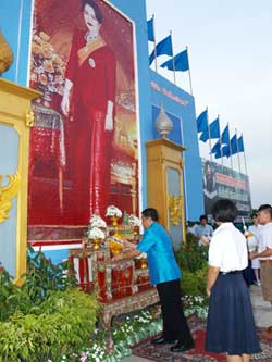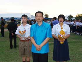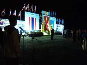 รองฯโกศล ได้นำพานพุ่มขึ้นถวายต่อหน้าพระบรมฉายาลักษณ์ของสมเด็จพระนางเจ้าพระบรมราชินีนาถ และรอร่วมพิธีจุดเทียนชัยเมื่อเวลา 19.19 น. เป็นต้นไป ซึ่งนายสุรพล พงษ์ทัดศิริกุล ผู้ว่าราชการจังหวัดฉะเชิงเทรา เดินทางมาเป็นประธานในพิธี ซึ่งมีข้าราชการ พ่อค้า ประชาชน ทุกหมู่เหล่าเดินทางมาร่วมพิธีกันเต็มสนามหน้าเวทีใหญ่ศูนย์การเรียนรู้ฯ
