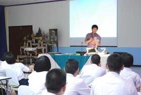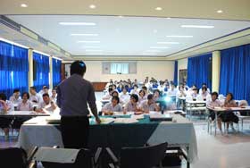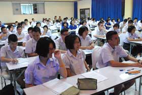 สำหรับวันนี้ (21 สค.)เป็นวันแรก นักเรียนที่ตั้งเป้าหมายเรียนแพทย์เข้ารับการสอนเสริมจำนวนกว่า 100 คน ติวเตอร์ที่มาเสริมภาษาอังกฤษฎิ์ ให้วันนี้ ชื่อพี่เกริก เครดิตเป็นเด็กอักษรศาสตร์จุฬาฯ นำมาโดยขวัญใจเด็กเบญจมฯ พี่อ้น ของเรานั่นเอง