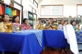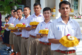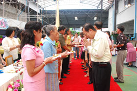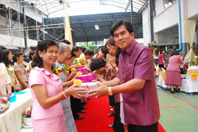 ช่วงแรก เป็นกิจกรรมตักบาตรข้าวสารอาหารแห้ง และครูกล่าวอำลาครูนักเรียน