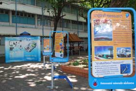 ส่วนการจัดนิทรรศการนั้นได้จัดที่ลานใต้ร่มหูกวาง เป็นนิทรรศการที่มีประโยชน์ที่นักเรียนควรรู้ มีกิจกรรมให้นักเรียนมีส่วนร่วมด้วยการตอบคำถามและมอบของที่ระลึกให้แก่นักเรียนที่ร่วมตอบคำถามด้วย แต่เป็นที่น่าเสียดายว่ามีนักเรียนเข้าชมนิทรรศการที่ ปตท. จัดในวันนี้ไม่มากเท่าที่ควร