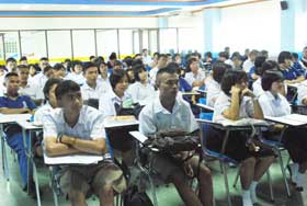 วันนี้(19 พ.ย.52) มีการจัดนิทรรศการเพื่อให้ความรู้กับนักเรียนเกี่ยวกับเรื่องพลังงานก๊าซธรรมชาติ โดยกลุ่มสาระการเรียนรู้วิทยาศาสตร์เป็นผู้ประสานงาน และจัดให้นักเรียนเข้ารับฟังการบรรยายของวิทยากรจาก ปตท. เกี่ยวกับเรื่องพลังงานที่ห้องเรียนรวม ชั้น 7 อาคาร 2 ความรู้ที่นักเรียนได้รับคือรู้ทันในเรื่องการใช้ก๊าซธรรมชาติอย่างมีคุณค่า