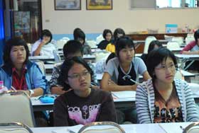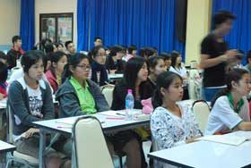 วันนี้(22 พ.ย.52) ตั้งแต่ 8.00 น. จนถึง 16.00 น. มีกิจกรรมติงวิชาคณิตศาสตร์ให้กับนักเรียนที่สมัครสอบเรียนทุนแพทย์ธรรมศาสตร์ที่ห้องโสตทัศนศึกษา โดยวันนี้ฝ่ายวิชาการร่วมกับงานแนะแนว ได้ประสานงานติดต่อ อ.เจี๋ย ติวเตอร์วิชาคณิตศาสตร์มาให้ความรู้แก่นักเรียน ซึ่งได้รับความสนใจจากนักเรียนเป็นอย่างมาก สำหรับนักเรียนที่เข้ารับความรู้ในวันนี้นอกจากเด็กเบญจมฯแล้ว ยังมีเพื่อนต่างโรงเรียนเช่น เซ็นต์หลุย ดัดดรุณี เบญจมฯ2 พนมอดุลฯ เป็นต้นเข้ามาร่วมเรียนด้วย ซึ่งการติวจะจัดอีก 2 วันคือวันที่ 23-24 พ.ย. นี้
