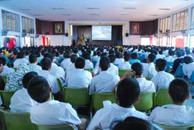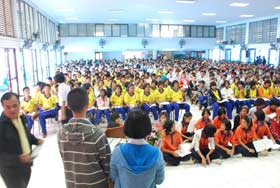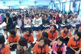 วันนี้สิ่งที่เป็นปัญหาคือห้องฉายภาพยนตร์ไม่สามารถควบคุมแสงได้ดีพอ เนื่องจากเป็นห้องประชุมที่เปิดโล่ง แม้จะนำผ้ามาปิดกั้นช่องแสงแล้ว ซึ่งก็พอช่วยได้เล็กน้อยเท่านั้น ในเรื่องนี้โรงเรียนควรพิจารณาติดตั้งวัสดุทึบแสงปิดช่องแสงเพื่อประโยชน์ในการแสดงสื่อภาพยนตร์อย่างนี้ในโอกาสต่อไปก็จะดีเป็นอย่างยิ่ง