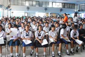 สำหรับวันนี้มีนักเรียนจากโรงเรียนต่างๆมาร่วมชม ได้แก่ โรงเรียนสุเหร่าสมอเซ วัดท่าสะอ้าน พุทธโสธร อนุบาลวัดปิตุลาฯ วิทยาราษฎร์รังสรรค์ และ ม.4/1 เบญจมราชรังสฤษฎิ์