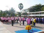 วันนี้(4 ธ.ค.52)ตั้งแต่เวลา 7.45 น. โรงเรียนจัดให้มีกิจกรรมทำบุญถวายเป็นพระราชกุศลและถวายพระพรแด่พระบาทสมเด็จพระเจ้าอยู่หัว เนื่องในโอกาสวันเฉลิมพระชนมพรรษา 5 ธันวาคม ที่สนามหน้าเสาธง ซึ่งโรงเรียนของเราจัดเป็นประจำทุกปี ในปีนี้เริ่มด้วยการเชิญชวนให้ครูนักเรียนร่วมทำบุญใส่บาตรข้าวสารอาหารแห้งพระสงค์จำนวน 9 รูป เพื่อถวายเป็นพระราชกุศลแด่ในหลวงของเรา จากนั้นเป็นพิธีถวายพระพรโดยมีผู้อำนวยการอำนาจ เดชสุภา เป็นประธานในพิธี