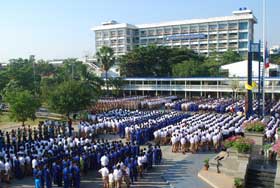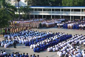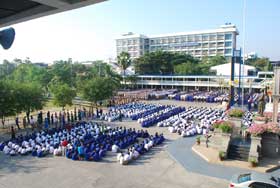 จากภาพที่ปรากฏนี้ จะมองเห็นความสวยงามของการรวมแถวของระดับชั้น ม.2 ม.3 และ ม.5 ได้อย่างชัดเจน และบรรยากาศของกิจกรรมหน้าเสาธงในวันนี้ส่วนใหญ่ต่างอยู่ในอาการสำรวมอย่างดียิ่ง