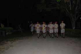 เวลาผ่านไปรวดเร็วมาถึงวันที่ 19 ธ.ค. 52 เป็นวันที่ 2 ที่จากบ้านมาเข้าค่ายกับเพื่อน ภายใต้การกำกับดูแลของครูที่ปรึกษาจำนวนมาก หลังจากตื่นนอนตอนเช้า ออกกำลังกาย อาบน้ำ แต่งชุดเครื่องแบบ ออกมารับประมานอาหารกันเรียบร้อย กิจกรรมวันที่สองของการเข้าค่ายก็เริ่ม เริ่มจากรวมกองเชิญธงชาติ จากนั้นกิจกรรมเดินทางไกลก็เริ่มขึ้น