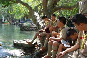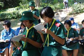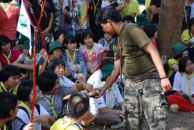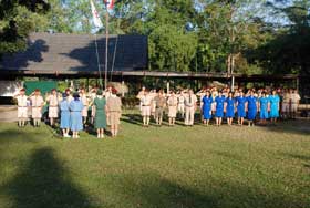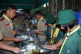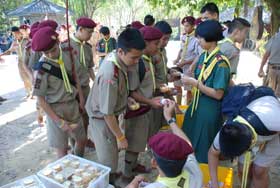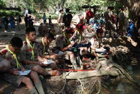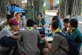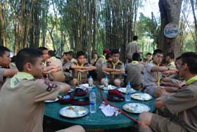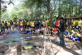 เมื่อเดินทางไกลกลับมาถึงค่าย รับประทานอาหารกลางวันเรียบร้อย กิจกรรมยามบ่ายก็เริ่มขึ้น เป็นฐานทดสอบสมรรถภาพของลูกเสือ เนตรนารี และยุวกาชาด เสร็จแล้วจึงเป็นการเตรียมกิจกรรมเล่นรอบกองไฟ ซึ่งเป็นไฮไลท์ของการอยู่ค่ายพักแรม