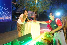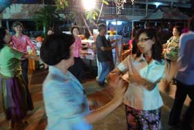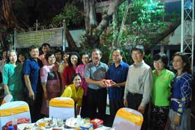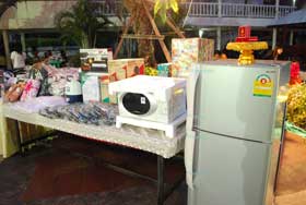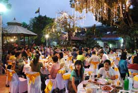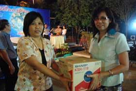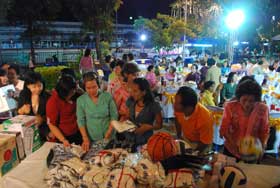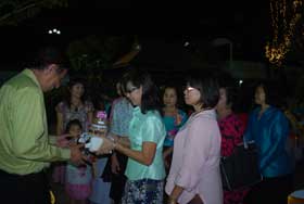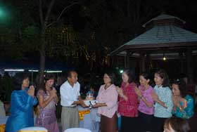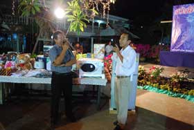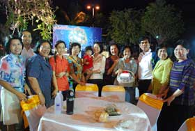 หลังจากเวลาผ่านไปถึง 18 นาฬิกา บรรยากาศก็เริ่มคึกคัก คุณครูทั้งปัจจุบัน และที่เกษียณไปแล้ว ทยอยเดินทางเข้ามาในบริเวณงานจนเต็มพื้นที่ ต่างเดินไปมาพูดคุย สนุกสนานเฮฮา ตักอาหารตามซุ้มต่างๆมานั่งรับประทานร่วมกันอย่าง อเร็ตอร่อย มีครูนักร้องขึ้นขับกล่อมเพลงให้ฟังเพลินๆ และคั่นเวลาด้วยการจับฉลากของรางวัลที่ทีมงานเตรียมไว้ให้กับคนมาร่วมงาน อาทิเช่น ตู้เย็น พระทองคำ เตาไมโครเว้ป เป็นต้น