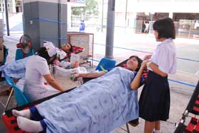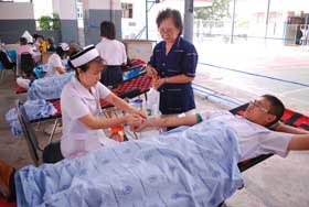 เมื่อเวลา 8.30 น. ของวันที่ 27 มกราคม 2553 ที่ผ่านมา งานอนามัยโรงเรียนร่วมกับโรงพยาบาลเมืองฉะเชิงเทรา ได้จัดกิจกรรมรับบริจาคโลหิตจากครูและนักเรียน มีนักเรียนเข้าร่วมกิจกรรมเป็นจำนวนมาก ที่มีจิตสาธารณะเสียสละโลหิตให้กับโรงพยาบาลเพื่อนำไปให้กับผู้ป่วยที่ขาดเลือด ทั้งนี้ใช้บริเวณใต้อาคารสมเด็จพระเทพเป็นสถานที่รับบริจาค