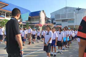 สำหรับการจัดการสอบวันนี้ โรงเรียนได้วางแผนอำนวยความสะดวกให้กับนักเรียนได้เข้าห้องสอบได้อย่างไม่สับสน ด้วยการมอบหมายให้รุ่นพี่เป็นพี่เลี้ยงนำนักเรียนที่ต้องสอบในแต่ละห้องมารวมตัวกันหน้าเสาธงก่อน โดยจัดแถวเป็นห้อง ๆ เพื่อสะดวกในการนำจากนั้นจึงให้พี่เลี้ยงนำน้องๆแต่ละห้องเดินแถวเข้าห้องสอบ ถือว่าเป็นมิติการจัดการที่ทำให้ไม่เกิดความสับสนโกลาหล ตัดความกังวลของผู้ปกครองที่เกรงว่าลูกหลานจะเข้าห้องผิดไปได้