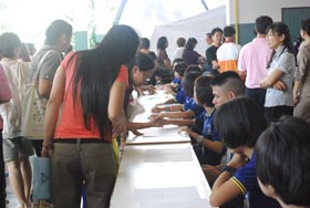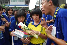 แล้วก็มาถึงวันนี้จนได้ วันที่ 6 พฤษภาคม 2553 เป็นวันที่นักเรียนชั้น ม.1 เฝ้ารอด้วยใจจดจ่อ ที่จะได้เข้ามารับฟัง รับรู้ เรื่องราวต่างๆที่เกี่ยวข้องกับตนเองในการที่จะใช้ชีวิตการเรียนในรั้วเหลืองน้ำเงินต่อไปอีก 3 ปี จนกระทั่งจบชั้นตัวประโยคมัธยมต้น ผู้ปกครองและนักเรียนต่างเดินทางมาโรงเรียนกันตั้งแต่เช้า เพื่อเข้ารายงานตัวต่อคณะกรรมการนักเรียนที่ช่วยงานต้อนรับน้อง ซึ่งพี่ๆก็ตื่นเต้นไม่แพ้น้องๆ เพราะนี่คือกิจกรรมชิ้นแรกที่พี่สภานักเรียนจัดดำเนินการ