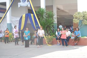 บรรยากาศของกิจกรรมนี้นั้นภายหลังจากการรายงานตัวแล้ว ครูวินัย แถบทอง ได้ปล่อยแถวให้นักเรียนไปรวมตัวที่หน้าเสาธงเพื่อดำเนินกิจกรรมรับน้อง หลังจากนั้นทั้งหมดได้เดินลอดซุ้มธงหลากหลายสีขึ้นไปประชุมกันบนห้องประชุมชั้น 3 อาคารสมเด็จพระเทพฯ เมื่อเวลาประมาณ 8.45 น. ซึ่งเป็นเวลาที่ BRR NEWS รายงานข่าวนี้ ส่วนเหตุการณ์การดำเนินกิจกรรมตลอดวันนี้เป็นอย่างไรนั้นจะได้นำมาบอกเล่ากันต่อไปครับ