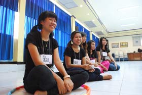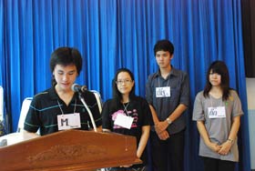 วันนี้(17 พ.ค.) นิสิตที่เป็นเลือดเนื้อเชื้อไขคนแปดริ้ว มาจัดกิจกรรมรับน้องที่สามารถสอบเข้าเรียนในจุฬาลงกรณ์มหาวิทยาลัยได้ซึ่งปีนี้พี่ๆบอกว่าน้องได้เข้าเรียนเยอะมาก เป็นที่หนักอกหนักใจของพี่แปดริ้วว่าปีนี้คงต้องออมค่าขนมเอาไว้เพื่อจัดกิจกรรมให้น้องๆในโอกาสต่อไปด้วย (พี่เค้าว่ามานะ) กิจกรรมที่จัดขึ้นครั้งนี้จัดที่ห้องโสตทัศนศึกษาเบญจมฯ มีคุณพรเลขา นิสิตจุฬารุ่นพี่ใหญ่เดินทางมาเป็นประธานเปิดกิจกรรม มีน้องๆมาร่วมกิจกรรมมากถึง 30 คน จากทั้งหมด 35 คน จากจำนวนทั้งหมดนั้นเป็นเด็กเบญจมฯ 23 คน