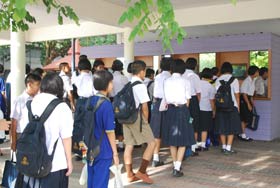 วันนี้ BRR NEWS ลงสังเกตการณ์การใช้ระบบสแกนนิ้วเพื่อเก็บข้อมูลนักเรียนที่มาโรงเรียน เห็นภาพของนักเรียนที่เข้าคิวรอสแกนนิ้วตามจุดต่างๆค่อนข้างหนาตา สำหรับความรวดเร็วในการเข้าสแกนนิ้วของแต่ละคนนั้นอยู่ในระดับที่รวดเร็ว ใช้เวลาในการสแกนนิ้วเฉลี่ยนคนละไม่เกิน 5 วินาที สำหรับข้อมูลที่เก็บได้นั้น ฝ่ายบริหารบุคคลได้นำไปใช้ในการตรวจสอบการมาเข้าแถวของนักเรียนด้วย ทำให้ในปีนี้การเข้าแถวของนักเรียนแต่ละชั้นเรียนมีนักเรียนเข้าร่วมกิจกรรมหน้าเสาธงอย่างพร้อมเพรียง