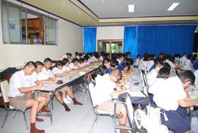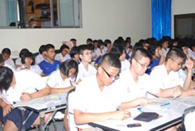 ฝ่ายบริหารวิชาการจัดให้มีรายการติวความรู้วิชาฟิสิกส์สู้ GAT-PAT ให้กับนักเรียน ม.6 เป็นวันที่สองหลังจากติววิชาชีววิทยาไปเมื่อวันอาทิตย์ที่ผ่านมา ในการติววิชาฟิสิกส์วันนี้มีนักเรียนสนใจเข้าร่วมรายการจำนวนมากถึง 215+37 ทำให้ห้องโสตทัศนศึกษาที่ใช้ในการสอนเสริมครั้งนี้แน่นเอี้ยดแทบไม่มีทางเดินเลยทีเดียว ต้องระบายนักเรียนส่วนหนึ่งมานั่งเรียนหน้าจอทีวีในห้องข้างๆ