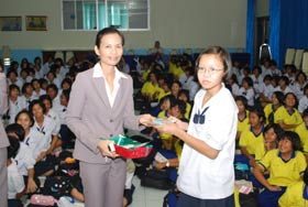 วันนี้ (9 ก.ค.53) เวลา 13.00 น. บริษัท ไทยวาโก้ จำกัด (มหาชน) ได้ขอเวลาเข้ามาให้ความรู้ในเรื่องผู้หญิง ผู้หญิง กับน้องนักเรียนหญิงชั้น ม.1 โดยวิทยากรของวาโก้ ให้ความรู้ในเรื่องการเปลี่ยนแปลงทางสรีระของผู้หญิงจากวัยเด็กสู่วัยรุ่น พร้อมทั้งแนะนำผลิตภัณฑ์สำหรับผู้หญิงในวัยทีนให้รู้จักทั้งวิธีเลือกใช้ และวิธีใช้ ถือว่าเป็นประโยชน์สำหรับน้องๆผู้หญิงชั้น ม.1 เป็นอย่างยิ่ง