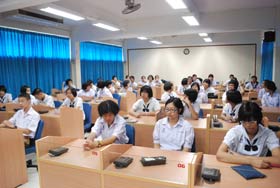 กิจกรรมที่ 4 เป็นกิจกรรมสอบคัดเลือกนักเรียนทั้งระดับ ม.ต้นและ ม.ปลาย จำนวนประมาณ 40 คน เพื่อเข้าร่วมโครงการทุน OVER SEA กิจกรรมนี้ กลุ่มสาระฯภาษาต่างประเทศเป็นผู้รับผิดชอบดำเนินการสอบที่ห้อง Sound LAB.