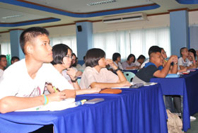 วิทยาศาสตร์ วันนี้ (27 กันยายน 2553) เวลา 13.30 น. BRR NEWS ได้ขึ้นไปสังเกตความเป็นไปของค่าย สอวน. วิชาฟิสิกส์ ค่าย 1 ที่ชั้น 7 อาคาร 2 ข่าวว่ากำลังเข้าสู่โหมดการเรียนรู้ภาคทฤษฎี เมื่อขึ้นไปถึงห้องเรียนรวม ก็พบว่านักเรียนจำนวน 30 กว่าชีวิต กำลังมีสมาธิรับฟังความรู้จากอาจารย์ภาณุพงศ์ บุญเพียร อาจารย์จากภาควิชาฟิสิกส์ คณะวิทยาศาสตร์ มหาวิทยาลัยบูรพา ที่เดินทางมาให้ความรู้กันเป็นท่านแรก ที่วันนี้อาจารย์ภาณุพงศ์ ได้ปูพื้นเรื่องเลขคณิตและพีชคณิตให้กับนักเรียนทั้งหมด