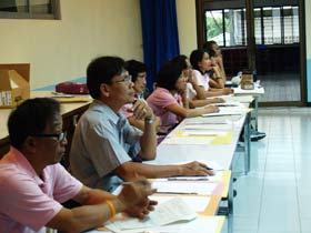 ผู้แนะนำการใช้โปรแกรมคือครูปริญญา สีใส ได้สาธิตให้ครูได้ชมผ่านจอโปรเจคเตอร์ ทั้งนี้ครูทั้งหมดต่่างกังวลใจเกี่ยวกับการเข้าระบบที่ทำได้ช้า และมักจะเกิดปัญหาเกี่ยวกับโปรแกรมไม่สามารถทำงานได้อยู่เสมอ จุดนี้วิทยากรก็รับทราบปัญหา ซึ่งก็ได้เสนอแนะวิธีการเข้าระบบควรเข้าระบบในช่วงที่ไม่มีคนใช้หนาแน่น เช่น ช่วงดึก หรือเช้าตรู่ เป็นต้น