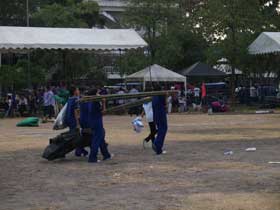 ภายหลังจากที่การแข่งขันเสร็จสิ้น บรรดานักเรียนที่เรียกตัวเองว่าสต๊าฟ ต่างกุลีกุจอรื้อเต๊นท์ รื้อวัสดุอุปกรณ์ต่างๆที่นำมาติดตั้ง นำไปทิ้งหรือจัดเก็บในที่เก็บ แข่งกับเวลาที่กำลังจะมืดค่ำลงทั้งๆที่ต่างคนต่างเหนื่อยล้าและอยากจะพักผ่อนกันเต็มที่ .. แต่งานยังไม่เสร็จก็จะยังไม่กลับอยู่ช่วยกันจนถึงที่สุด