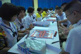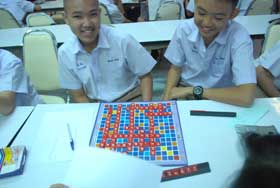 คณิตศาสตร์ วันนี้ (13 มกราคม 2554) เวลา 11.10 น. กลุ่มสาระฯคณิตศาสตร์จัดกิจกรรมแข่งขันเกมส์ A-MATH ให้กับนักเรียนระดับชั้นมัธยมศึกษาตอนต้น ที่ห้องโสตทัศนศึกษา มีนักเรียนเข้าร่วมแข่งขันจำนวนมากหลายทีม ทำให้ต้องแบ่งการแข่งขันเพื่อคัดเลือกออกเป็น 2 รอบ คือเมื่อวันจันทร์ที่ผ่านมา และวันนี้ ทีมนักเรียนชนะในวันนี้และจากวันจันทร์จะได้เข้าไปแข่งขันในรอบต่อไปกับผู้ที่ชนะมาด้วยกัน ซึ่งจะได้ติดตามการแข่งขันมารายงานให้ทราบกันต่อไป