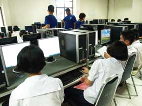 ห้องเรียนอินเตอร์เน็ตไม่มีนโยบายสนับสนุนให้นักเรียนเข้าเล่นเกมทุกชนิด... เราจะพยายามเตือนและให้เลิกเล่นในห้องนี้