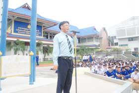 วันนี้(21 กพ.54)ภายหลังจากพิธีการมอบรางวัลแก่นักเรียนหน้าเสาธงแล้ว คุณอนุสรณ์ ฐปนานนท์ ตัวแทนกรรมการเครือข่ายผู้ปกครองนักเรียนฯ ได้ขึ้นพบนักเรียนเนื่องในวาระที่จะสิ้นสุดการเรียนการสอนในปีการศึกษา 2553 เพื่อกล่าวให้ข้อคิดแก่นักเรียน โดยเฉพาะนักเรียนชั้น ม.6 ซึ่งทางเครือข่ายผู้ปกครองได้จัดกิจกรรมรับประทานอาหารร่วมกันให้กับนักเรียนชั้น ม.6 ในวันที่ 28 กุมภาพันธ์ 2554 นี้ โดยเครือข่ายผู้ปกครองนักเรียนเป็นเจ้าภาพ ถือเป็นครั้งแรกที่มีการจัดกิจกรรมอย่างนี้