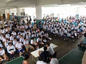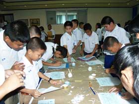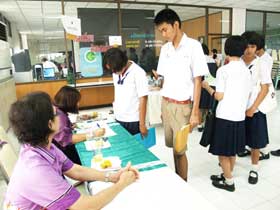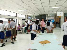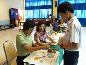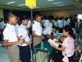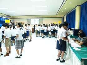 News วันแรกของการรับสมัครเข้าเรียนต่อชั้น ม.1 และ ม.4 โรงเรียนเบญม์ มีผู้ปกครองพาบุตรหลานเดินทางเข้ามาในโรงเรียนเพื่อรอเวลาเข้าสมัครกันตั้งแต่เช้า ซึ่งก็ได้รับการต้อนรับขับสู้จากคุณครูซึ่งเป็นเจ้าหน้าที่รับสมัครเป็นอย่างดี เมื่อถึงเวลาเปิดให้สมัครในเวลา 8.30 น. กรรมการที่ต้อนรับได้ทยอยนำนักเรียนเข้าสมัครในห้องรับสมัครที่ห้องโสตฯ และหน้าห้องอินเตอร์เน็ต บรรยากาศเป็นไปด้วยความตื่นเต้นของนักเรียนที่มีความตั้งใจสมัครวันนี้เป็นวันแรก