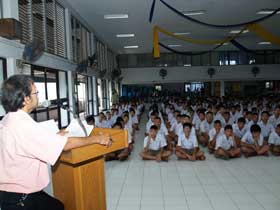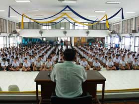 ฝ่ายบริหารบุคคล นักเรียนชั้น ม.2 และ ม.3 เข้ารับการปฐมนิเทศกันอย่างพร้อมเพรียงถึง 95% นับว่าเป็นนิมิตรหมายที่ดีมากสำหรับการเรียนในปีการศึกษา 2554 นี้ และจากการสังเกตการการรับการปฐมนิเทศในปีนี้มีความแตกต่างไปจากปีที่ผ่านมาคือนักเรียนต่างตั้งใจรับฟังข่าวสารที่รองฯโกศล กิตตินิรันดร์กุล รองฯฝ่ายบุคคล และครูหัวหน้าระดับนำมาบอกกล่าว ดังนั้นจากภาพที่ออกมาในการปฐมนิเทศนักเรียนชั้น ม.2 และ ม.3 ในปีนี้ถือว่าเป็นเรื่องที่น่ายินดีที่นักเรียนมีความเข้าใจในเรื่องมารยาทการเข้าประชุมร่วมกับเพื่อนหรือคนจำนวนมาก