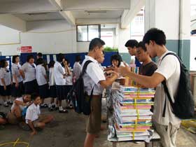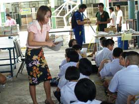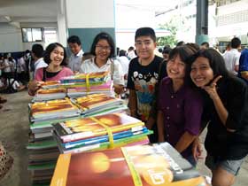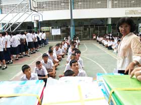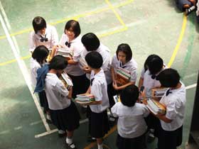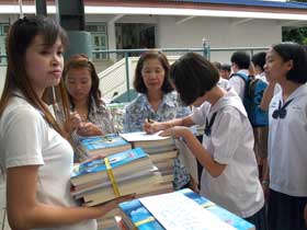 หลังจากการรับฟังข่าวสารจากการประชุมแล้ว ในปีนี้โรงเรียนได้จัดหนังสือเรียนฟรีที่เป็นนโยบายของรัฐบาลมามอบให้นักเรียนก่อนเดินทางกลับบ้านด้วย โดยหนังสือที่รัฐบาลจัดให้นี้เป็นการจัดให้นักเรียนฟรีโดยไม่ต้องนำกลับมาคืนเหมือนปีที่ผ่านมา